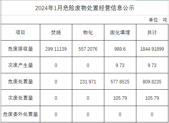 1月危險(xiǎn)廢物處置經(jīng)營(yíng)信息公示